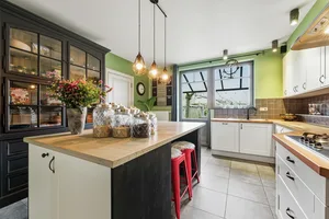 Vanuit de zithoek kijk je uit op de prachtig aangelegde tuin. Een plek waar binnen en buiten naadloos in elkaar overlopen. De ruime leefkeuken is volledig uitgerust en biedt alles wat je nodig hebt. Vanuit je “kookpaleis” bereik je de tuin, de droge kelder en de bijkeuken. En net daar wacht een aangename verrassing…